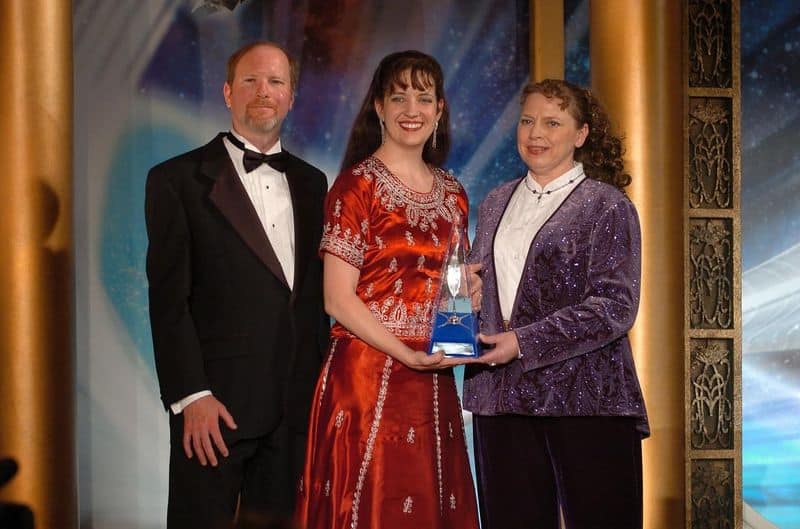 Blair receiving her award from Kevin J. Anderson and K.D. Wentworth.