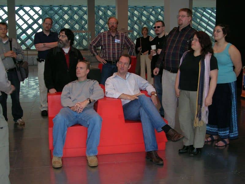 Matt and me going through the library tour with relaxed disinterest.