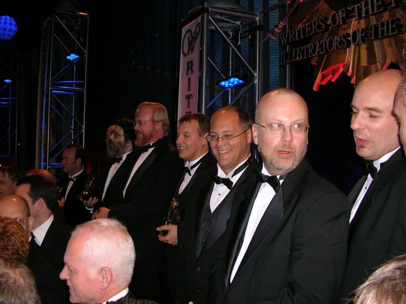 The winning authors preparing for the group photo.